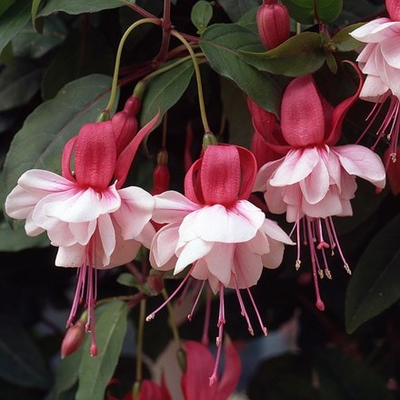 A bushy, upright deciduous shrub with double, white, streaked red flowers with r