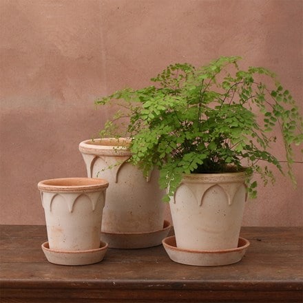 Gothic arch design tapered plant pot with saucer – terracotta