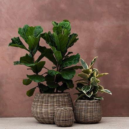 Large round rattan plant basket with waterproof liner – 3 sizes