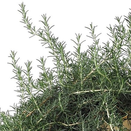 An arching evergreen, culinary herb rosemary shrub with aromatic leaves